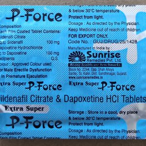 雙效威而鋼 Extra Super P-Force高含量版是一種兩強的成分是100mg枸櫞酸西地那非和100mg達泊西汀的混合成份,能同時改善勃起障礙和早洩。對於許多男人,勃起功能障礙、早洩攜起手來。這可能會導致很多困難,每一顆皆採取兩種不同的藥片。