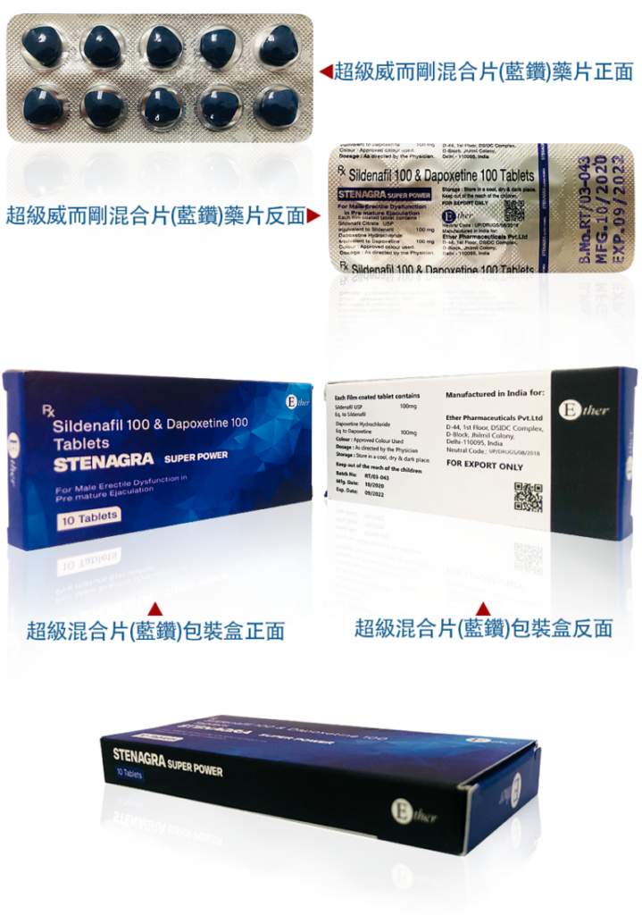 【有效成分】西地那非100mg(威而鋼)+達泊西汀100mg(必利勁)
